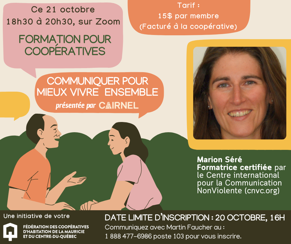 - Guider les participants à se questionner et à identifier le prochain petit pas vers un meilleur vivre-ensemble, car le succès d’une coopérative est une histoire d’êtres humains qui se parlent.