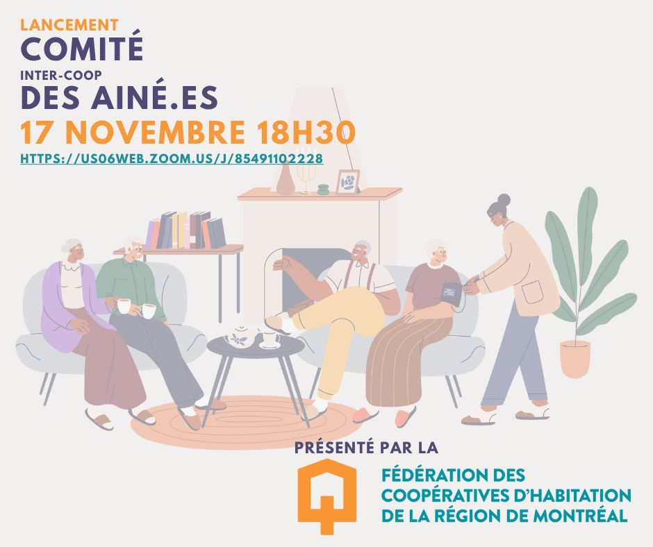 La Fédération des coopératives d’habitation de la région de Montréal (FCHARM) souhaite mettre sur pied un comité inter-coopératives d’aîné·es pour reconnaître la force et renforcer le rôle essentiel des membres expérimenté·es dans notre mouvement. Ce comité sera un espace d’échange, de solidarité et d’action collective entre les aîné·es des différentes coopératives d’habitation de Montréal.